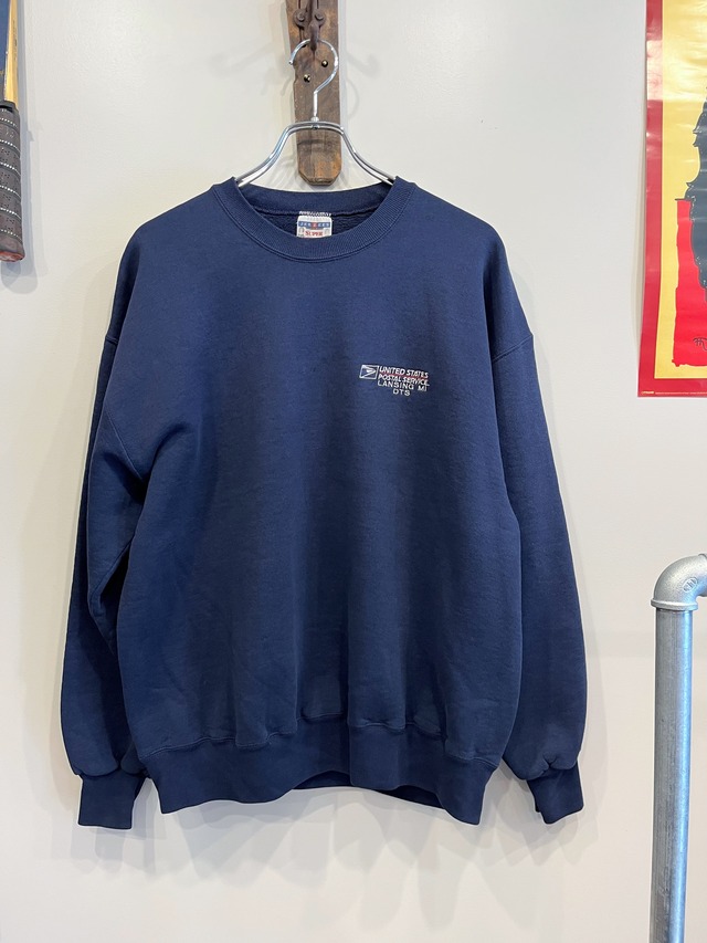 JERZZERSの刺繍入りスウェットシャツ 都会的なネイビーカラーに 胸元には”USPS”(アメリカ合衆国郵便公社)の刺繍が入る可愛らしいデザインが◎ 生地はコットン×ポリエステルの裏起毛スウェット地で 肉厚ながらも軽く柔らかな着心地です 肩や身巾はたっぷりと取られていますが 着丈の長すぎないボックス型のシルエットが合わせやすい印象 1枚でも重ね着にも重宝する シンプルながらも程よいアクセントの利いたアイテムです 画像3枚目が実物に近い色目です 【素材】 50%コットン 50%ポリエステル 【サイズ】 着丈:68.0 肩巾:60.5 身巾:62.0 袖丈:58.0 ※寸法の多少の誤差はご了承くださいませ ※ヴィンテージ特有の経年変化がありますので、ご理解いただきご購入ください ※写真は極力実物に近づけられるようにしておりますが、モニター環境やお使いのデバイスによって多少異なる場合がございます 2925