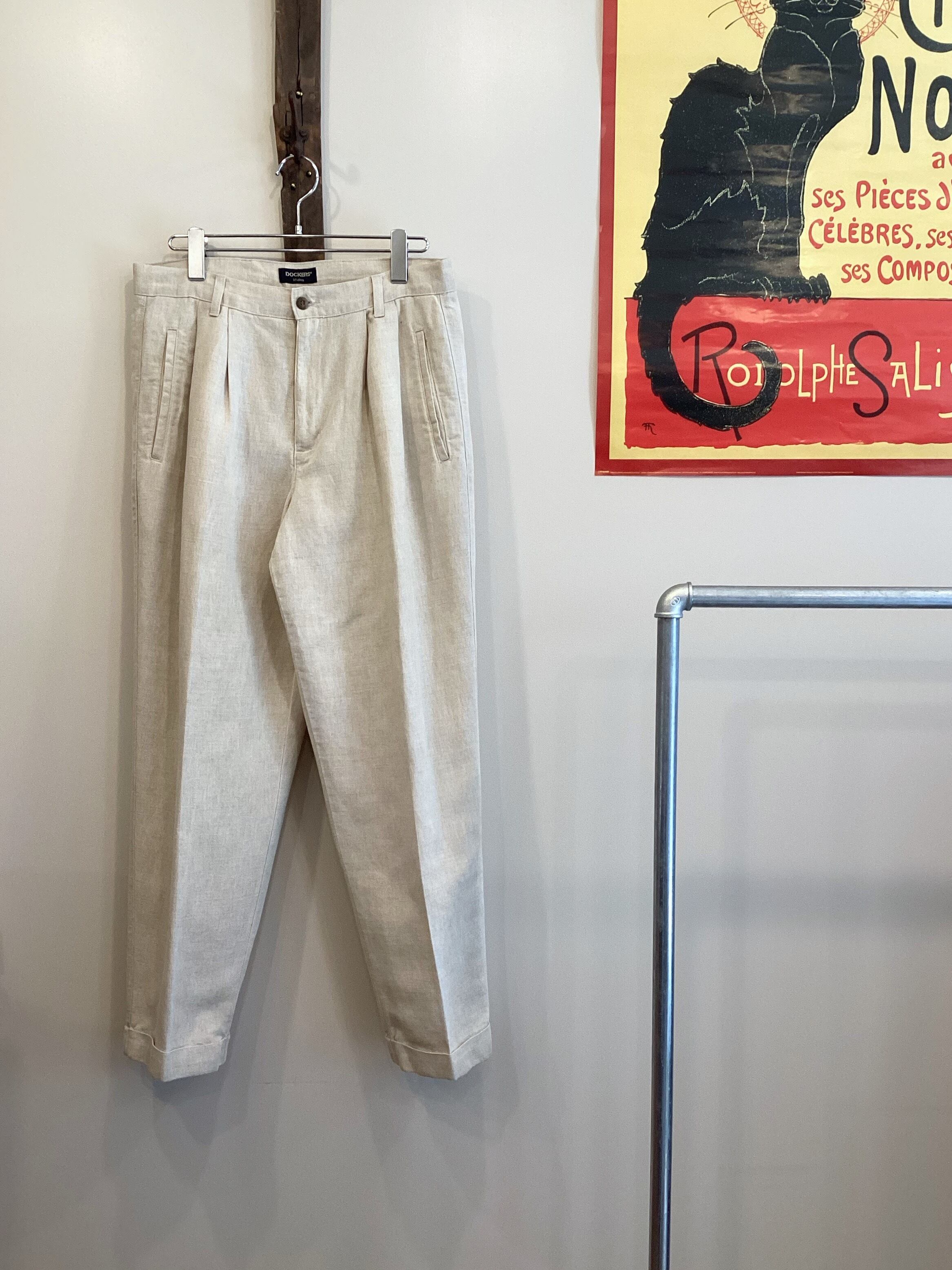 【DOCKERS】90’s LINEN TWOTUCK TROUSERS W32×L30(W32×L29.5)