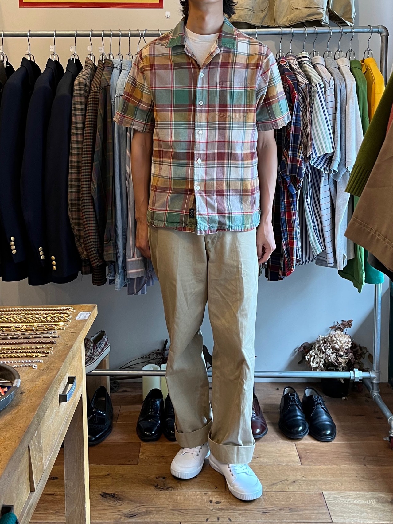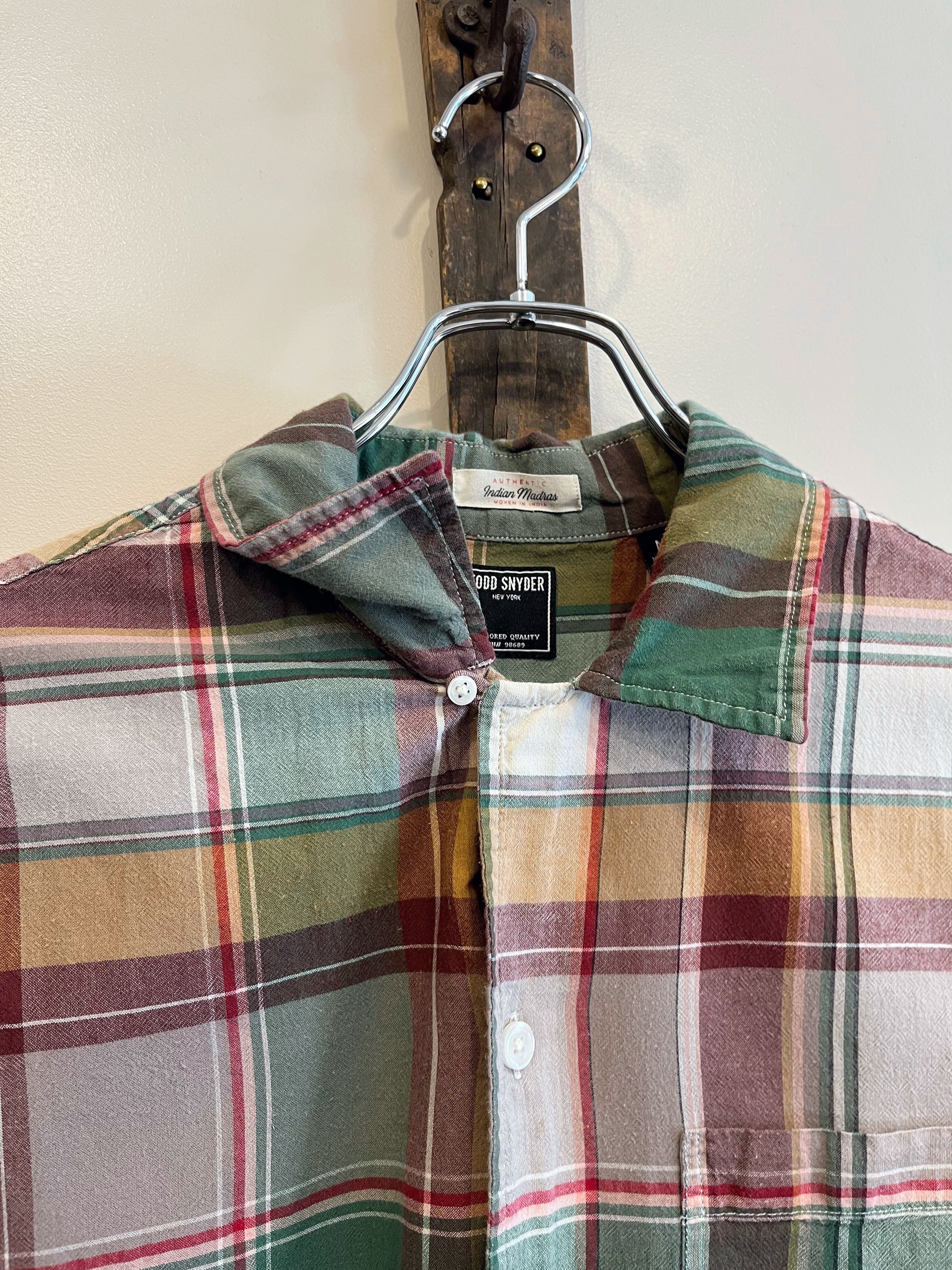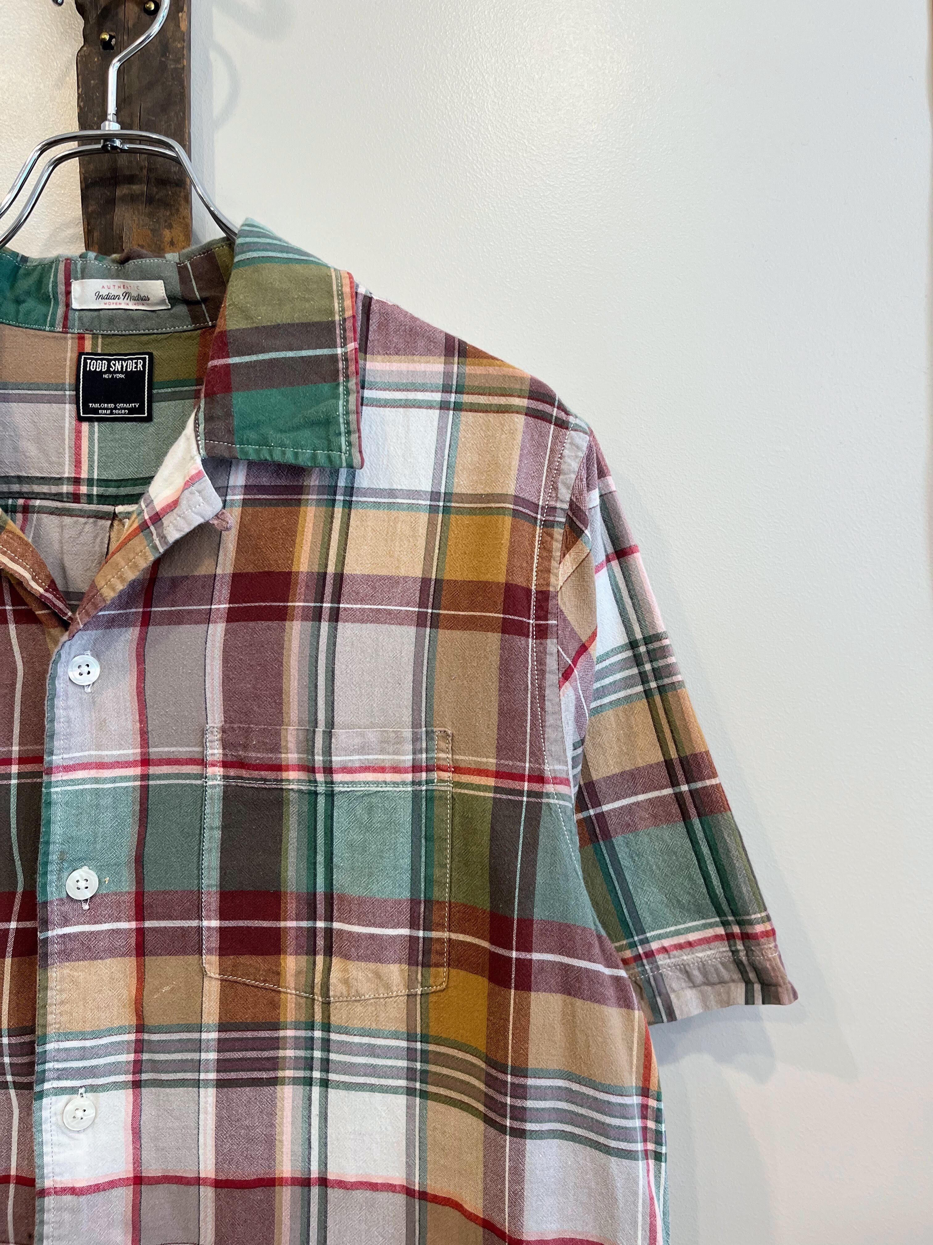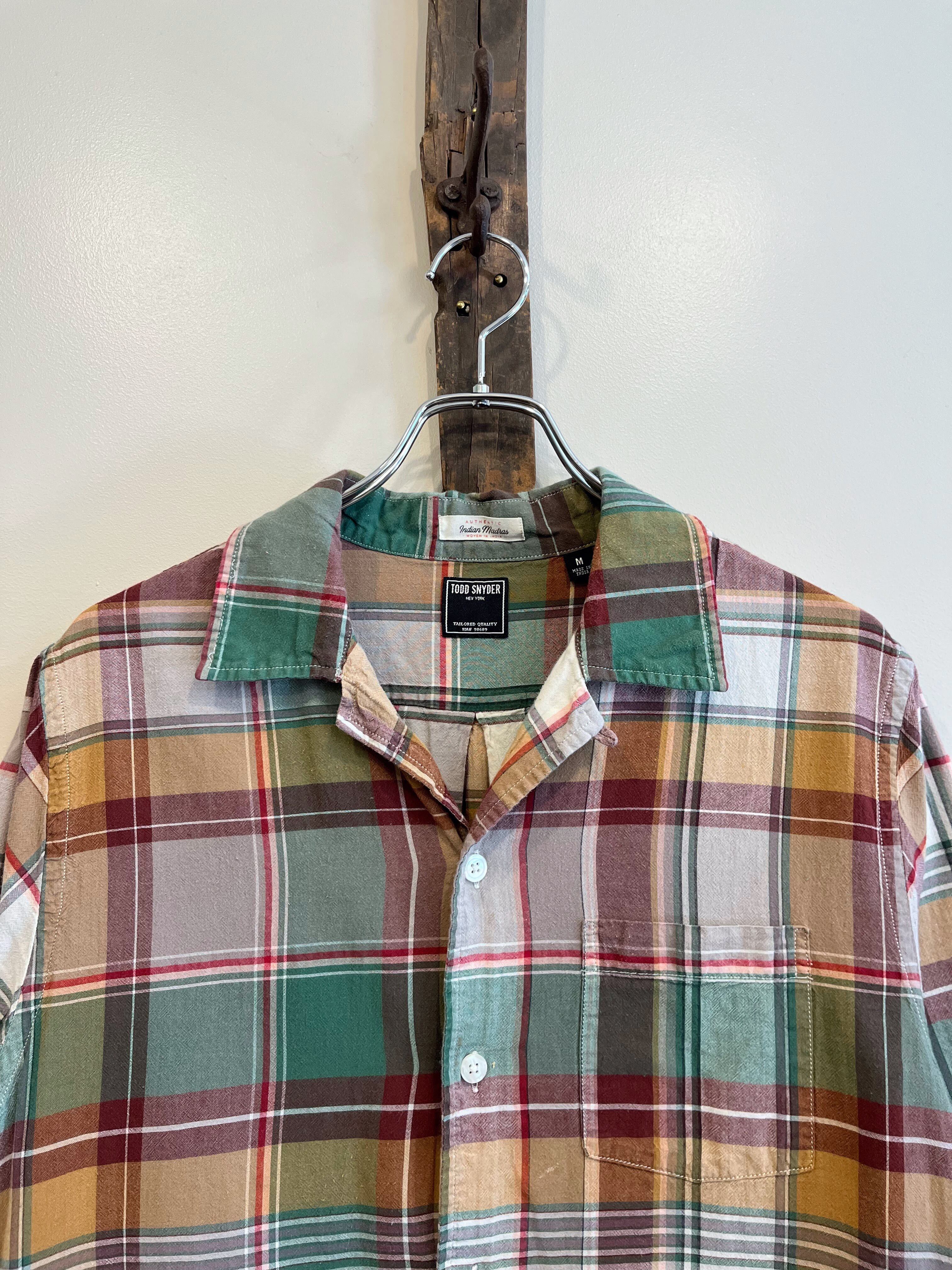 【TODD SNYDER】MADRAS CHECK OPEN COLLAR SHIRT sizeM