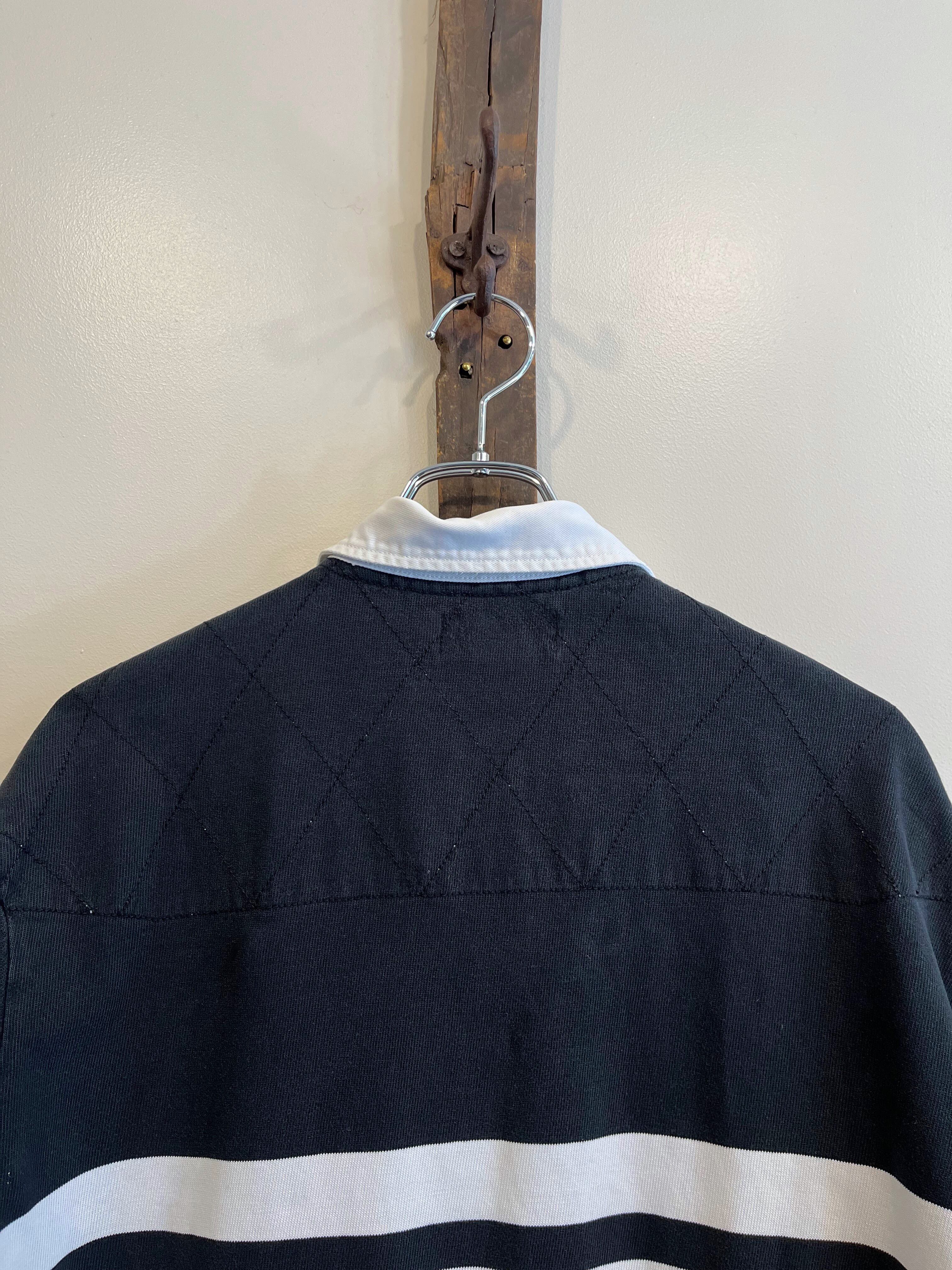 ブラック×ホワイトの恰好良い配色のラグビーシャツです