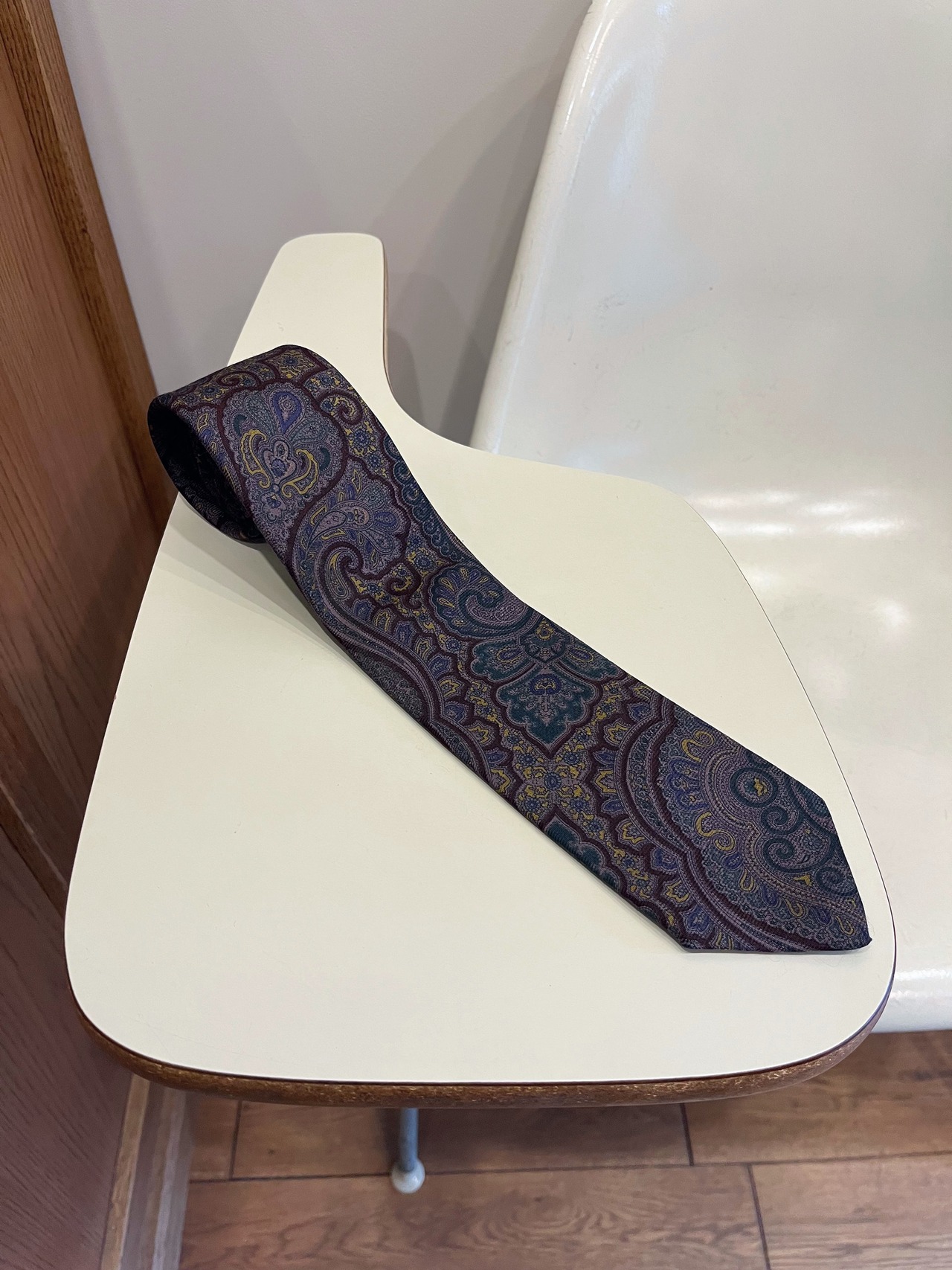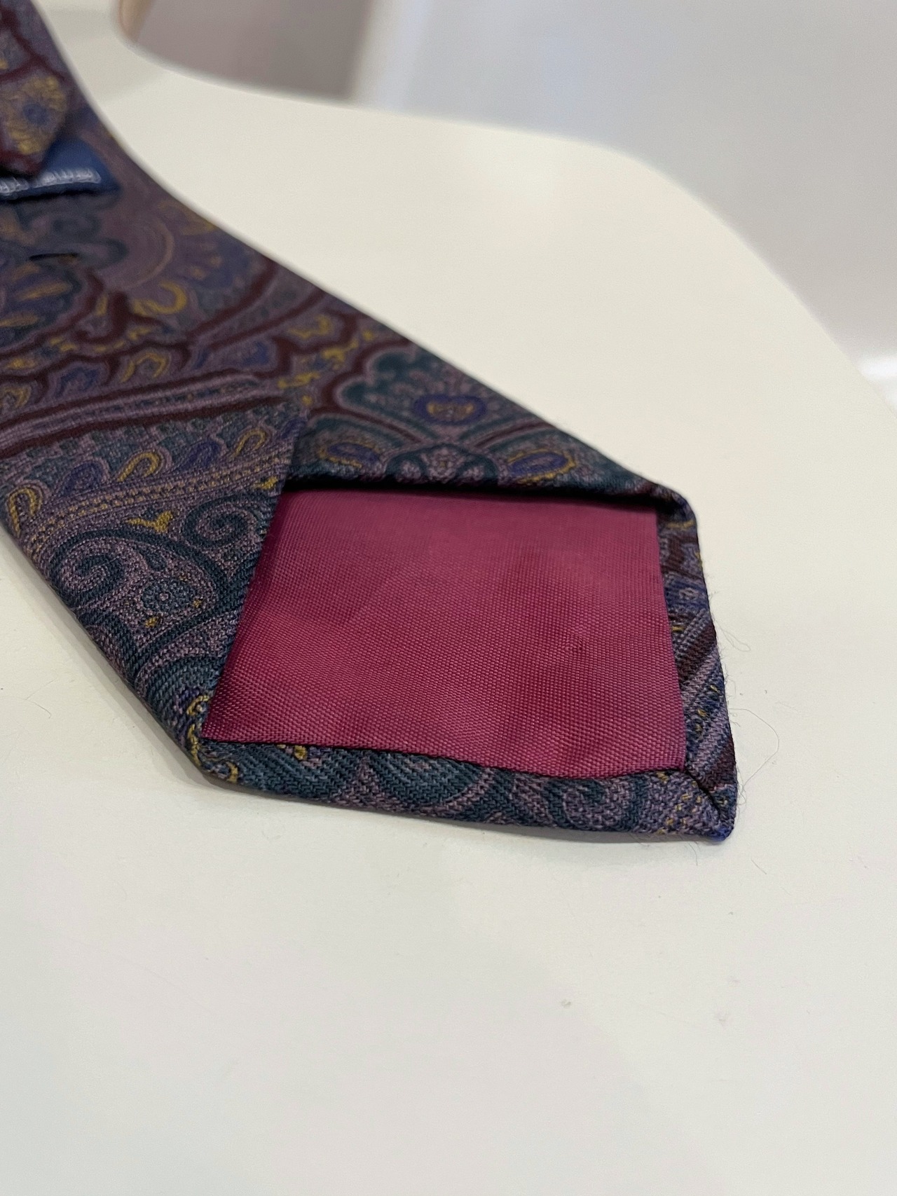 ワイン、オリーブ主体の落ち着いた配色のペイズリー柄が特徴的な1本