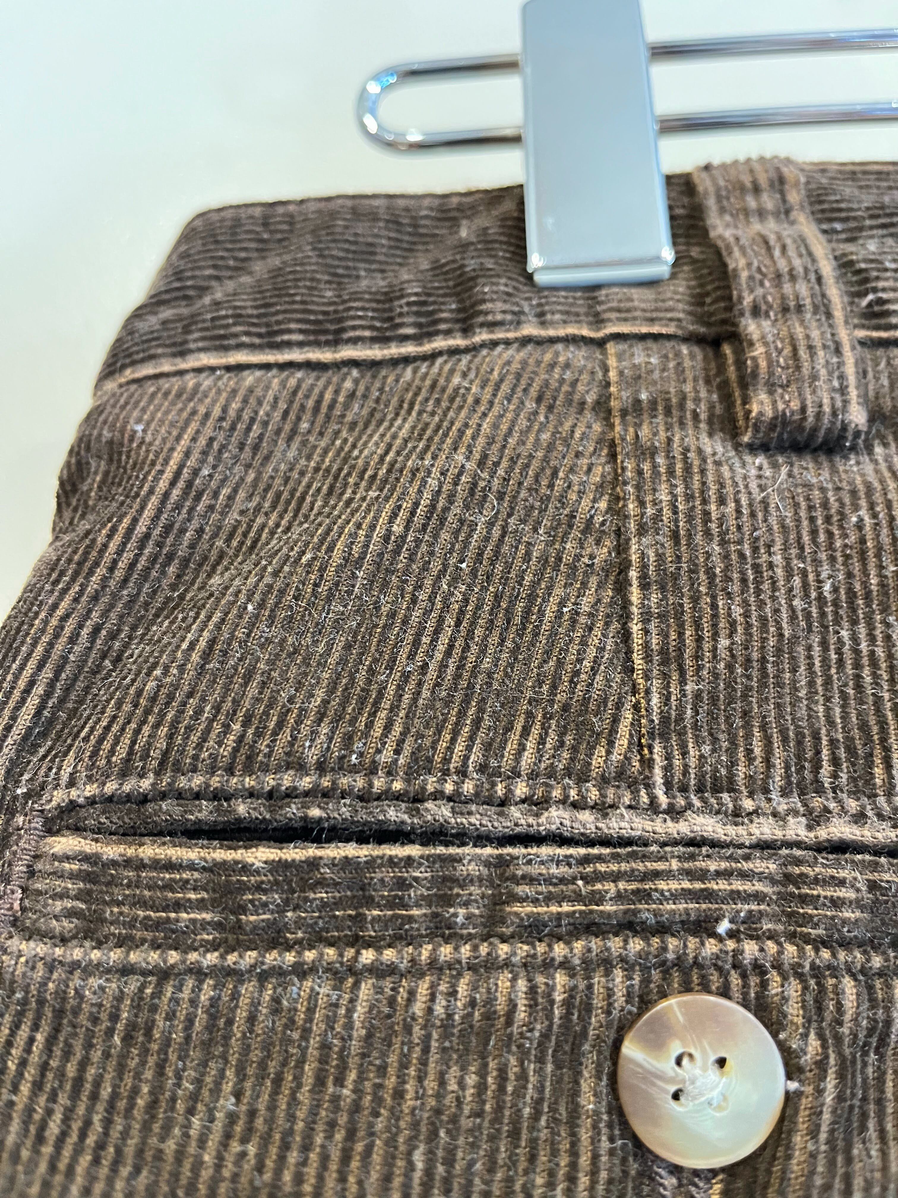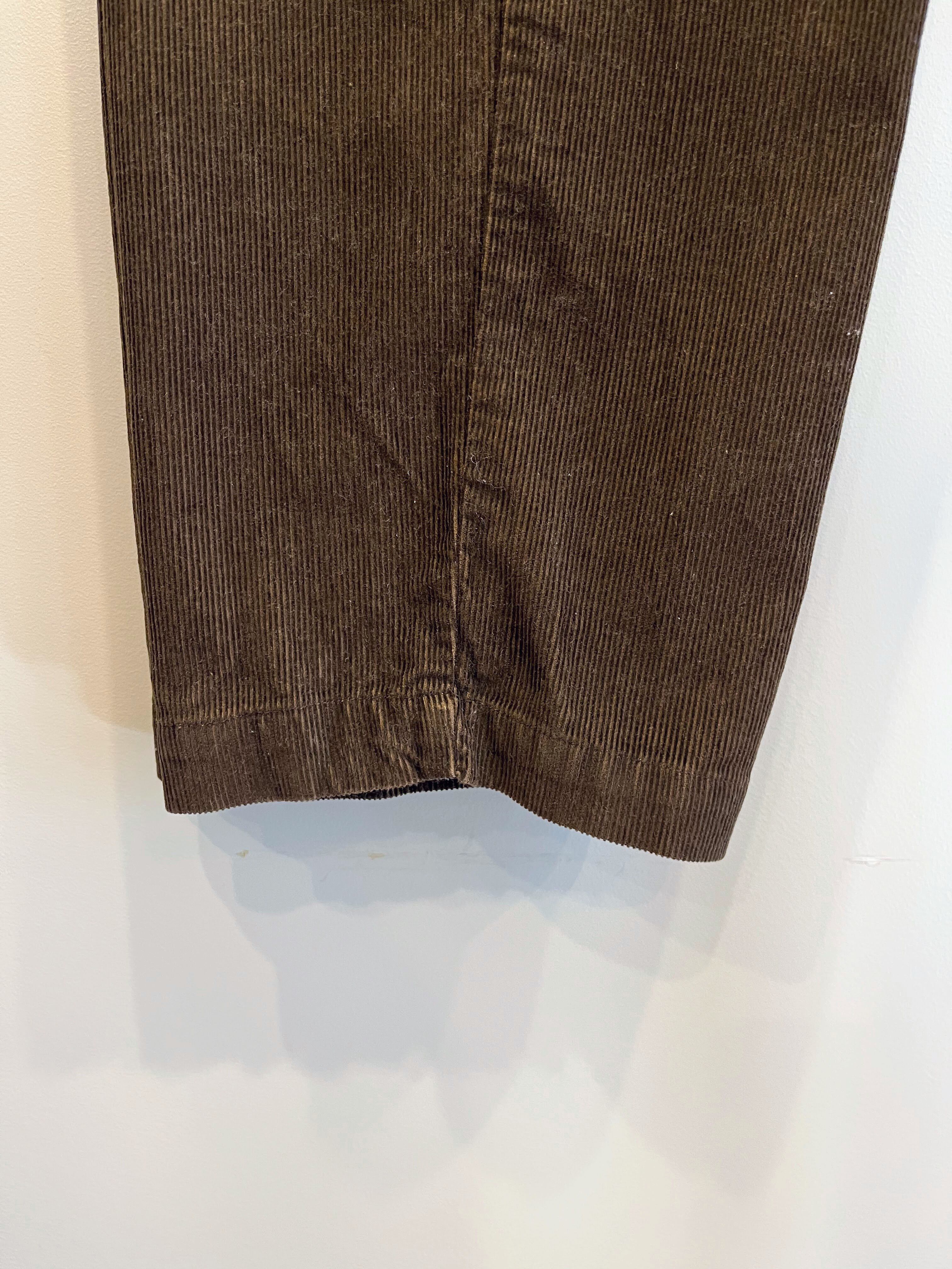 落ち着いたブラウンカラーに細畝のコーデュロイ素材が上品な1本