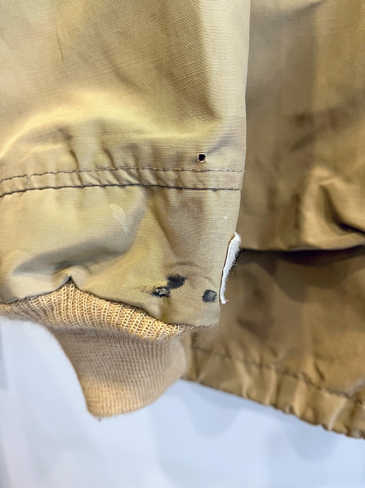 右袖カフスに汚れとダメージ(19枚目)、背面マップポケット上に薄汚れ(20枚目)