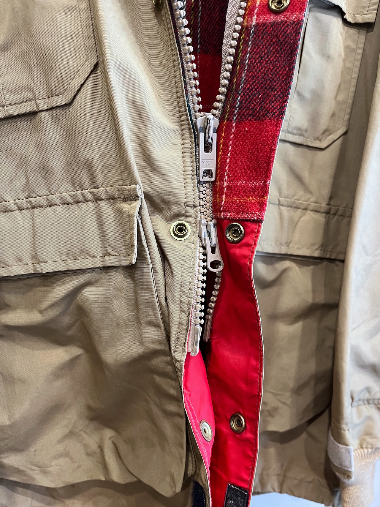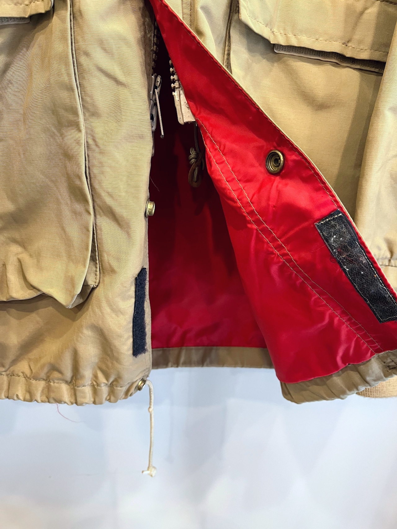 前立て下のベルクロや袖リブがカスタムで追加された古着らしい仕様も◎