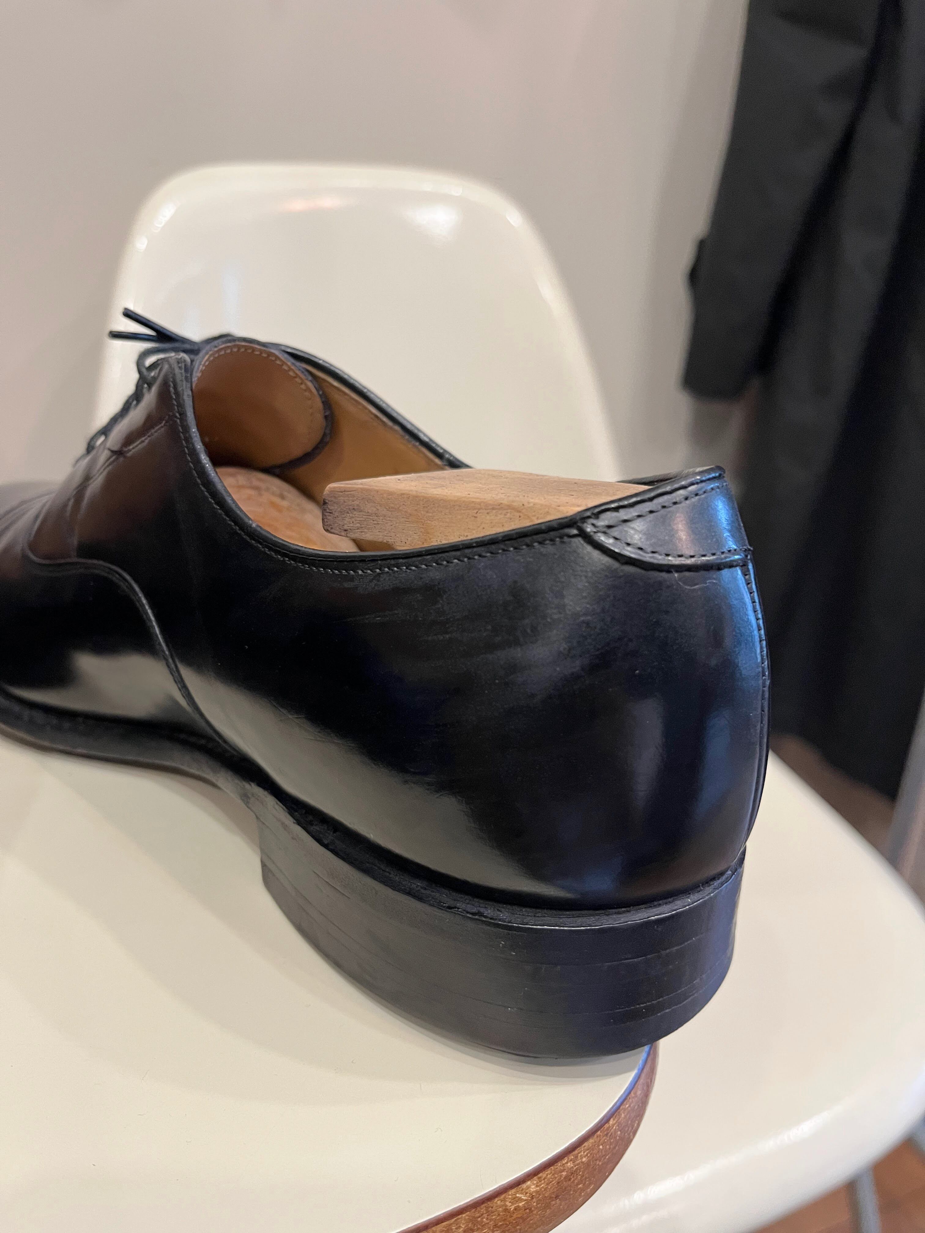 こちらはドレッシーな内羽根式6アイレットのキャップトゥ