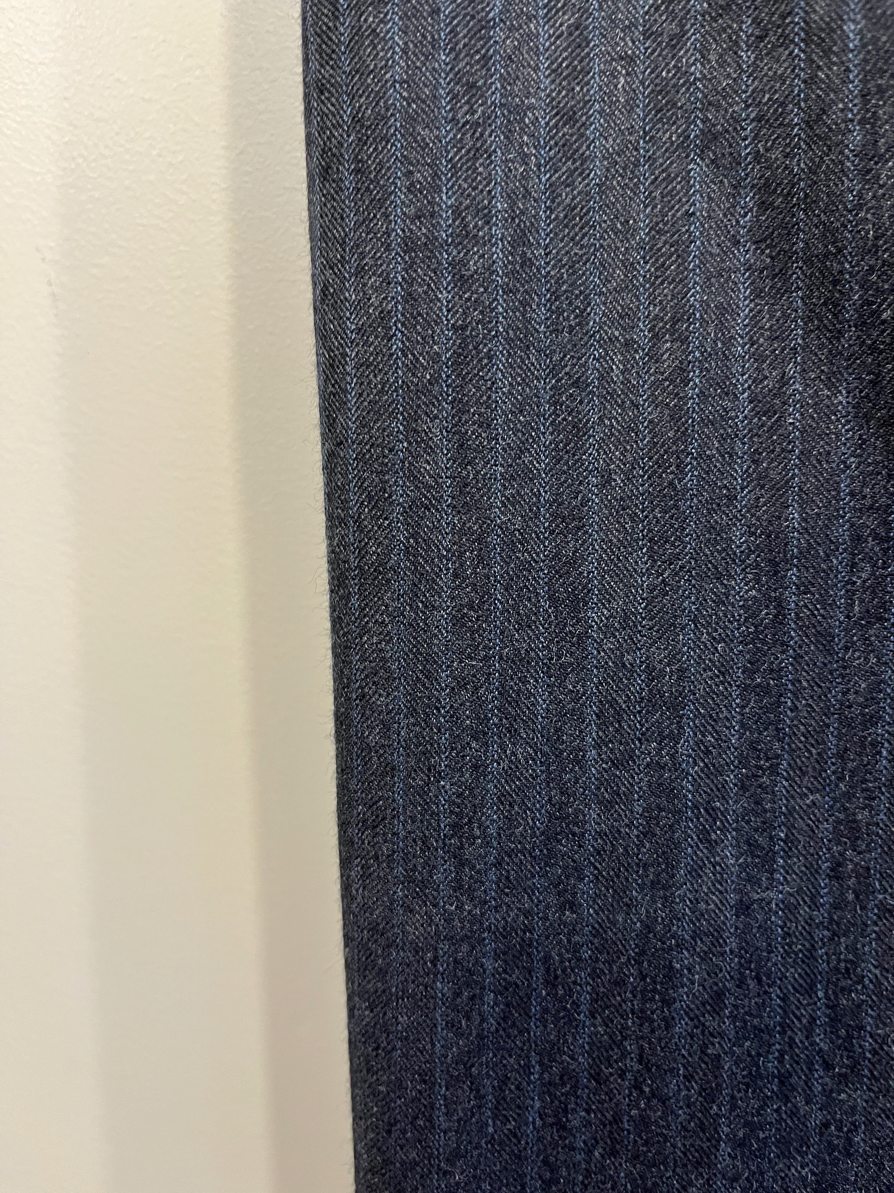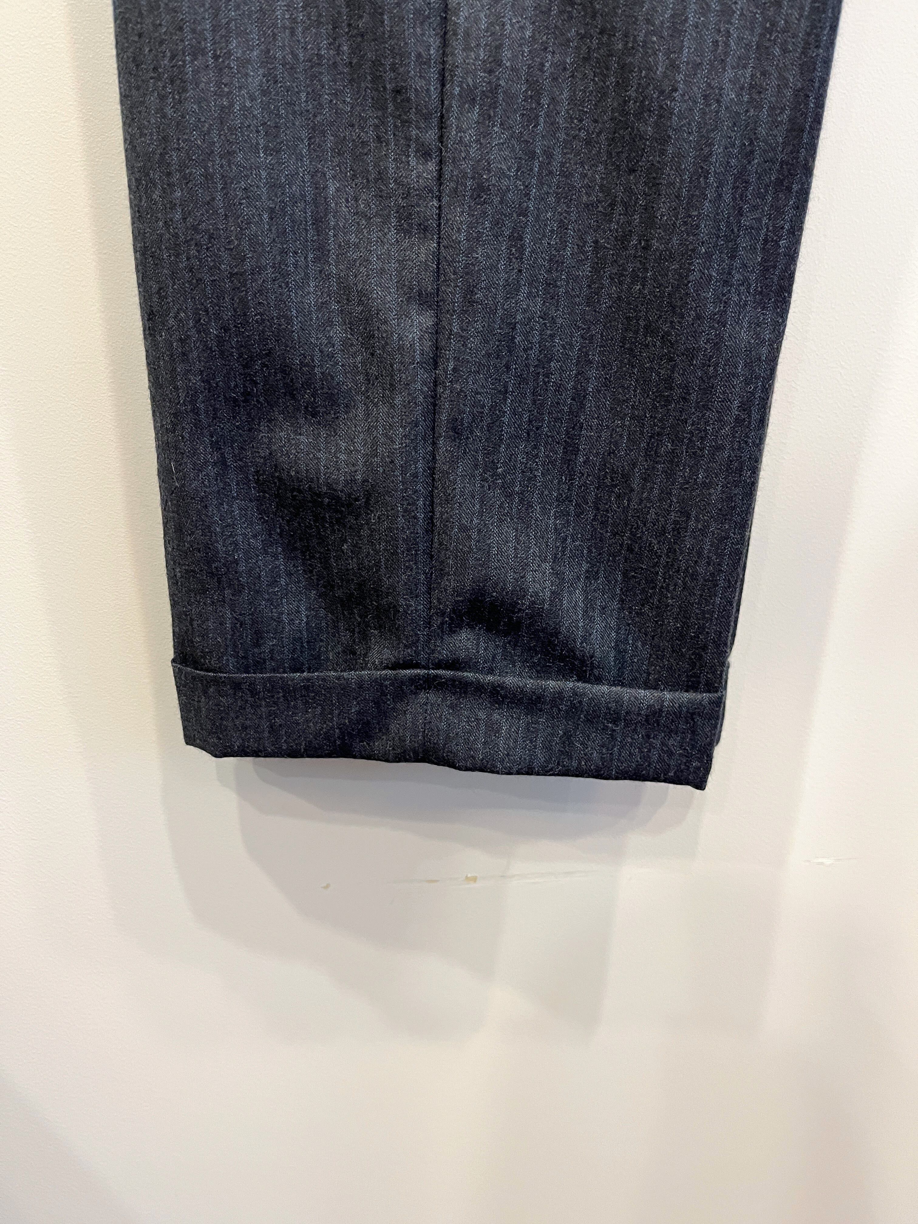 チャコールベースにブルーストライプの入るツータックトラウザーズです