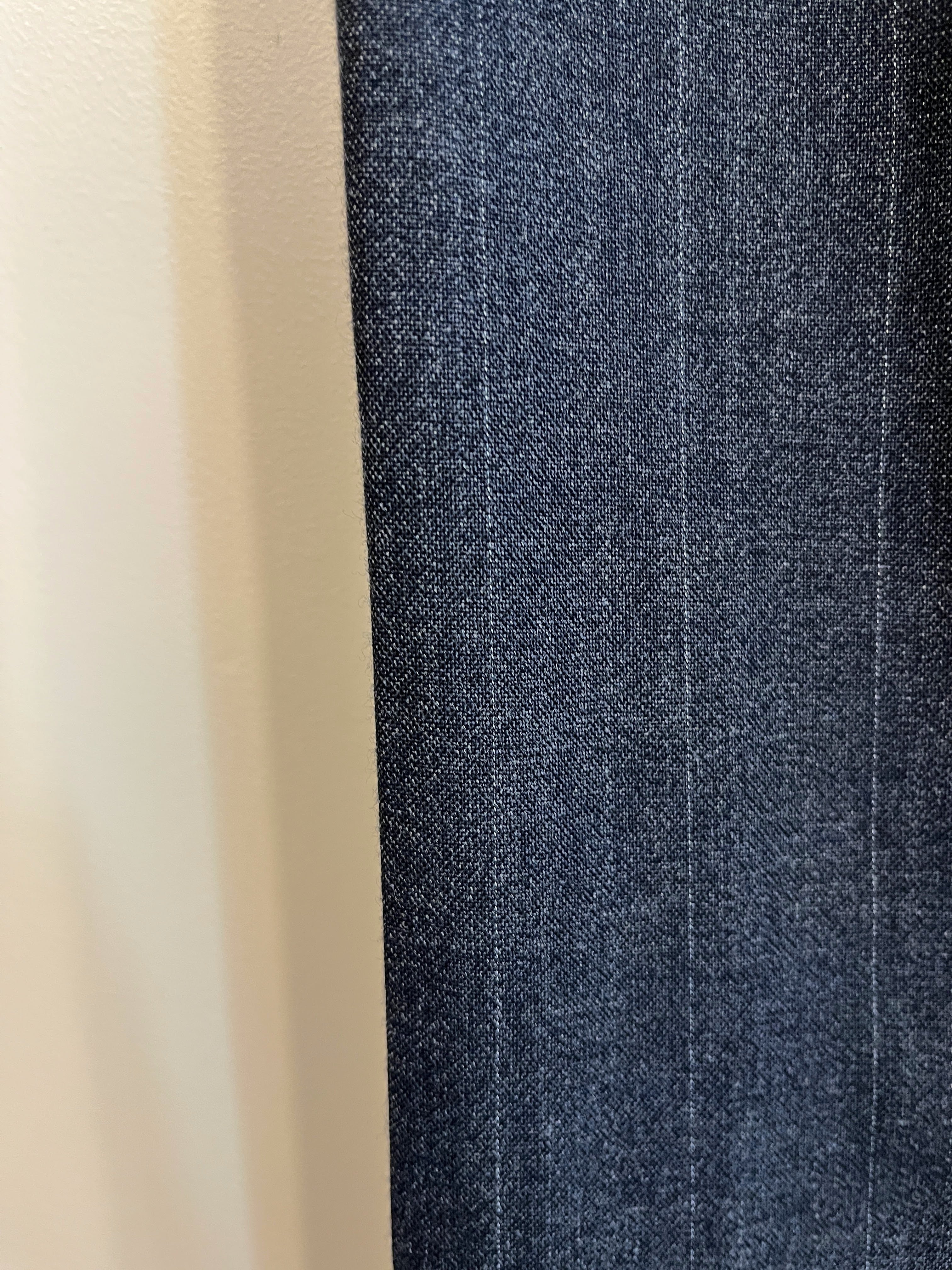 深いチャコールグレーにわずかに入るチョークストライプが上品な1本