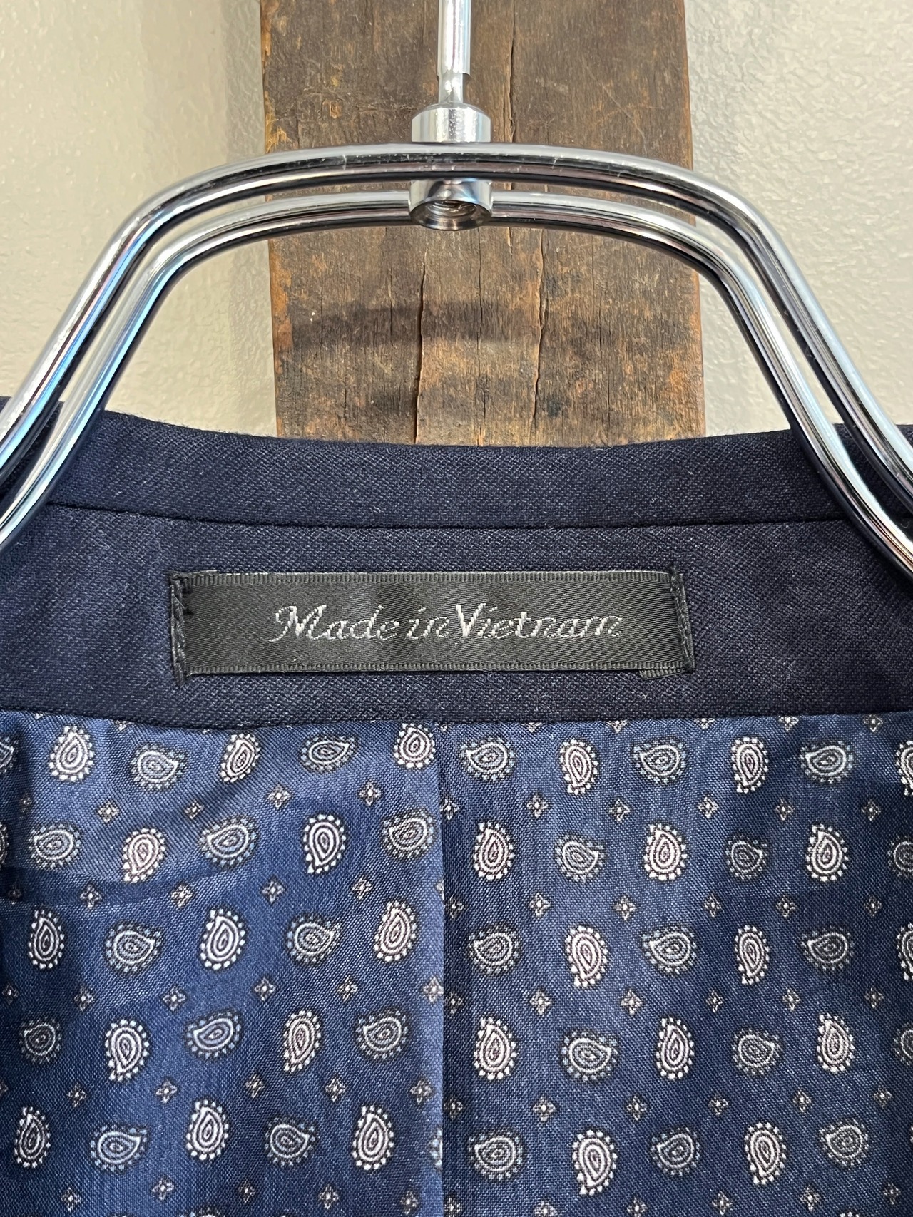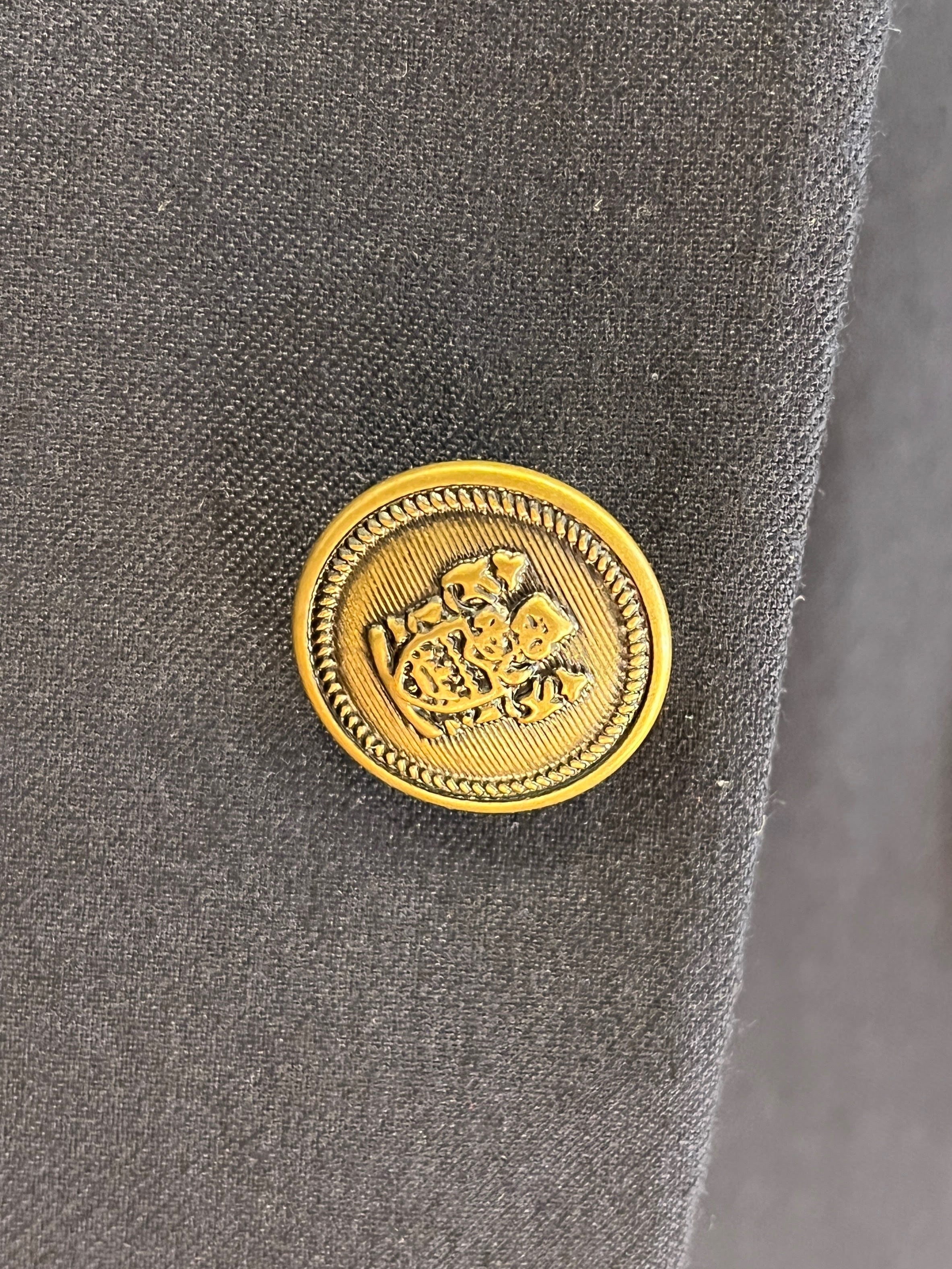 裏地は台場仕立て、オリジナルのクレストボタンやペイズリー裏地など