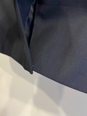 ウール×ポリエステルのサージ素材は鈍い光沢があり非常にソフトな着心地
