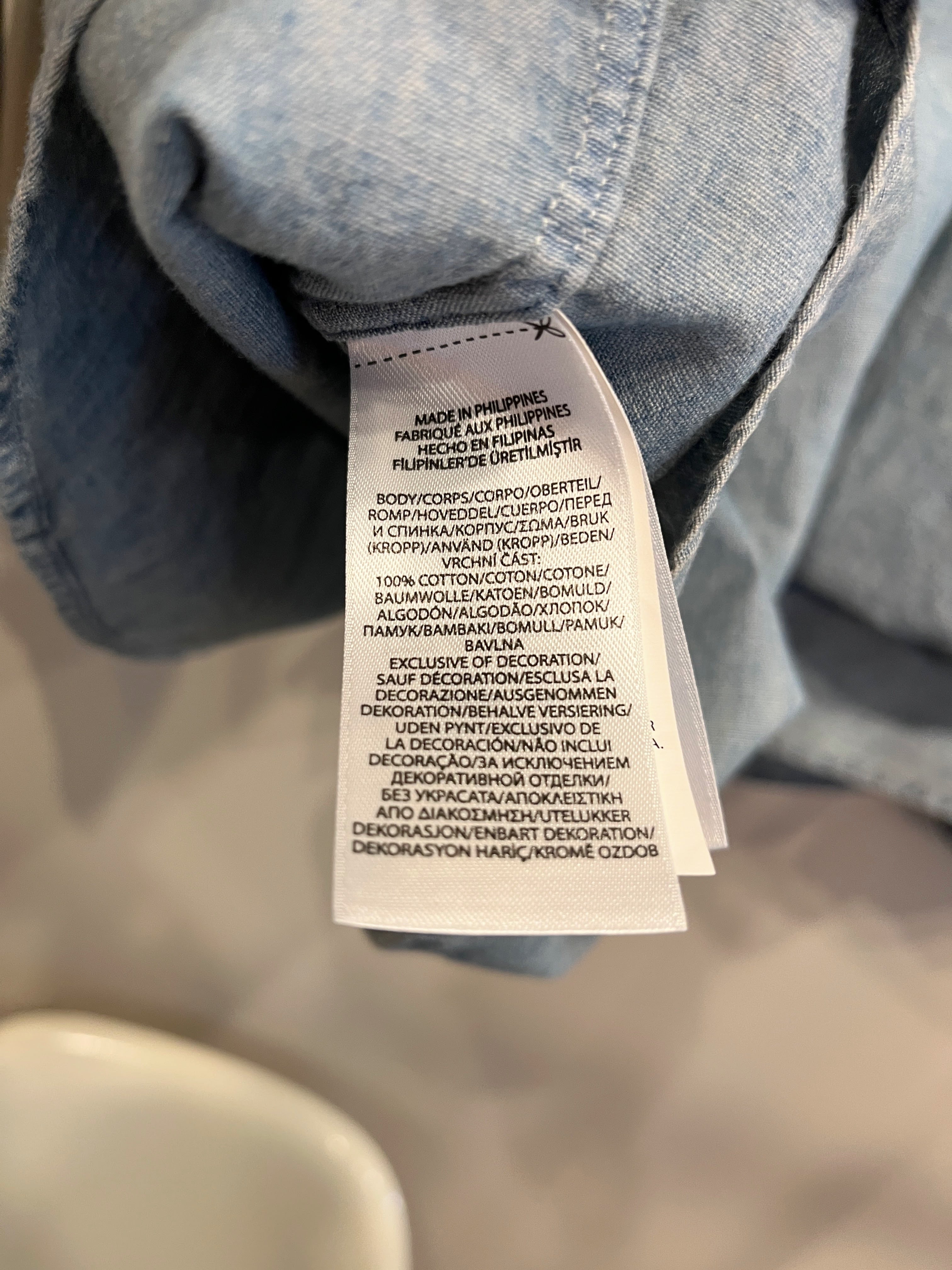程よく色落ちしたインディゴシャンブレー素材に