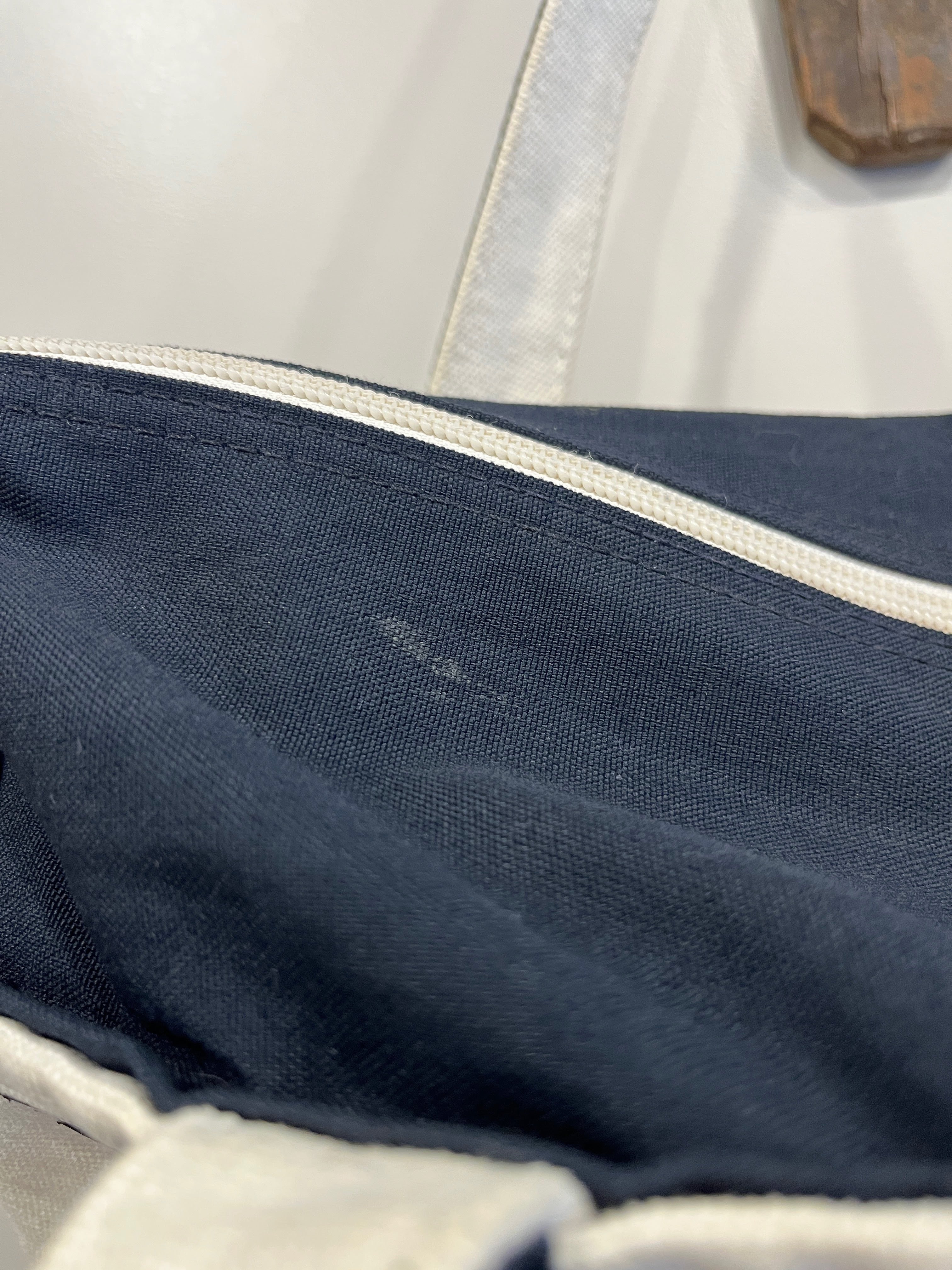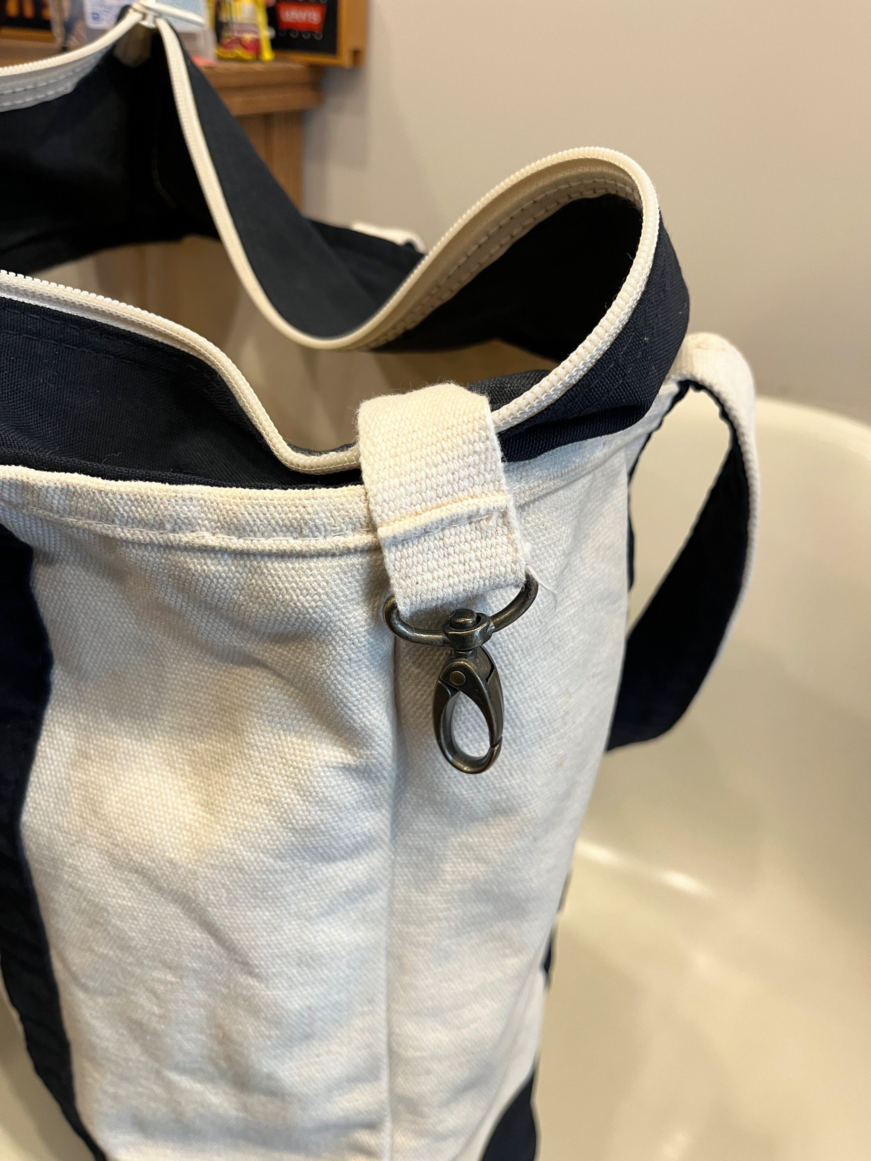 ナチュラルカラーのボディにネイビーハンドルの組み合わせに
