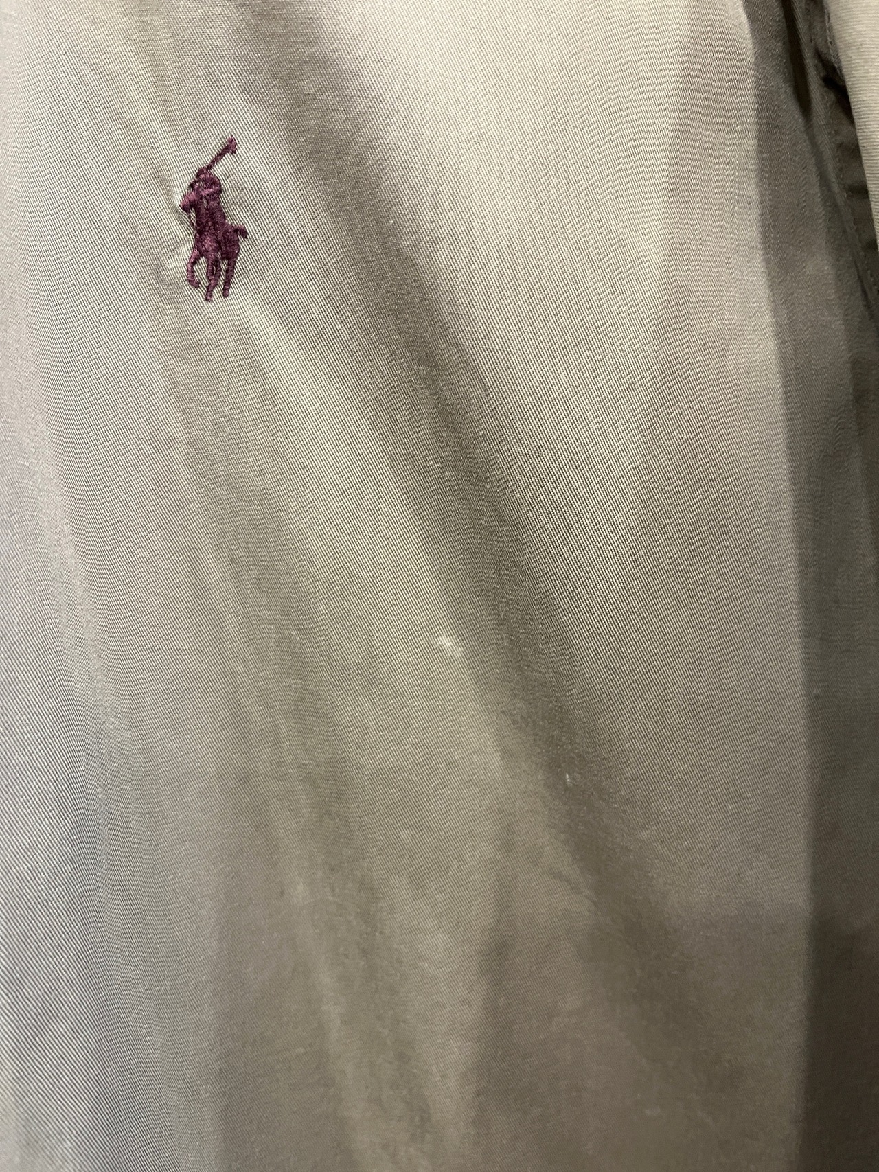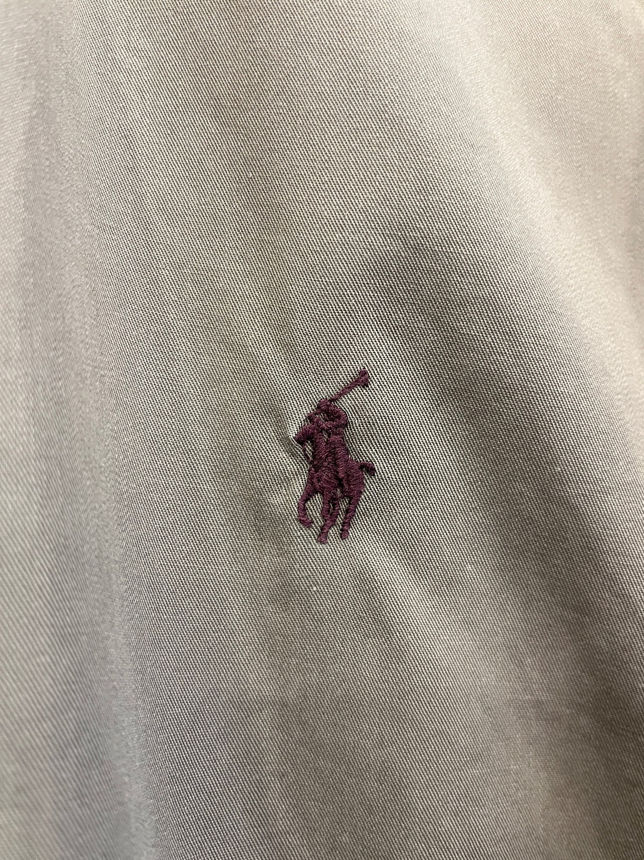 深めのワインカラーで打たれたポニー刺繍の良い組み合わせ◎
