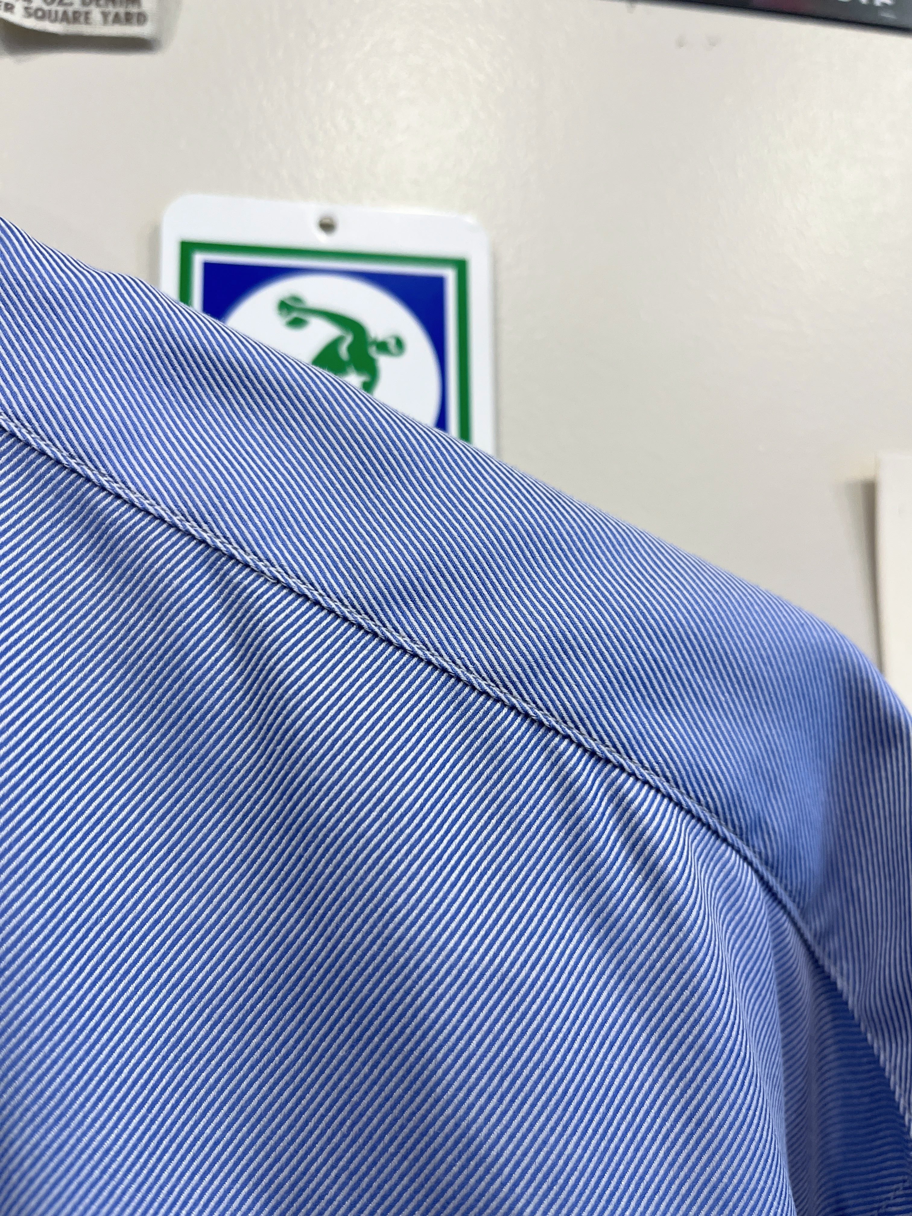 タテはサックスブルー、ヨコはホワイトで構成されたツイル素材は
