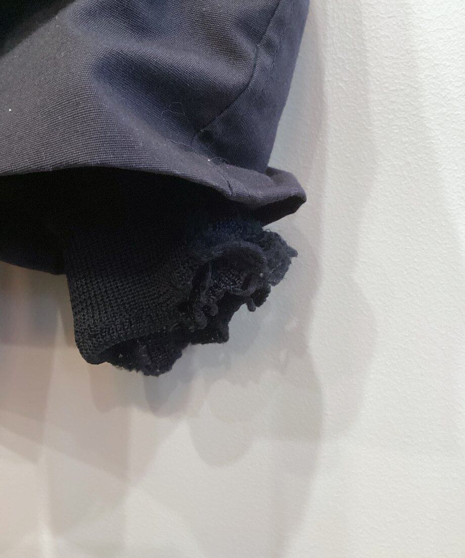 左袖のリブにダメージ 背面中央裾に小さなペンキ汚れがありますが