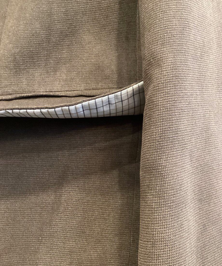 季節感のあるブラウンカラーの表地は100%ポリエステルの別珍