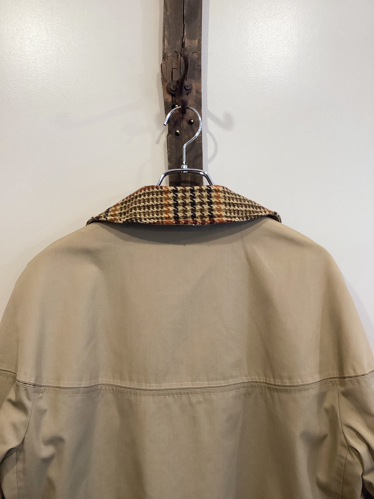 ハリ感のあるベージュボディにガンクラブチェック襟のコンビネーション