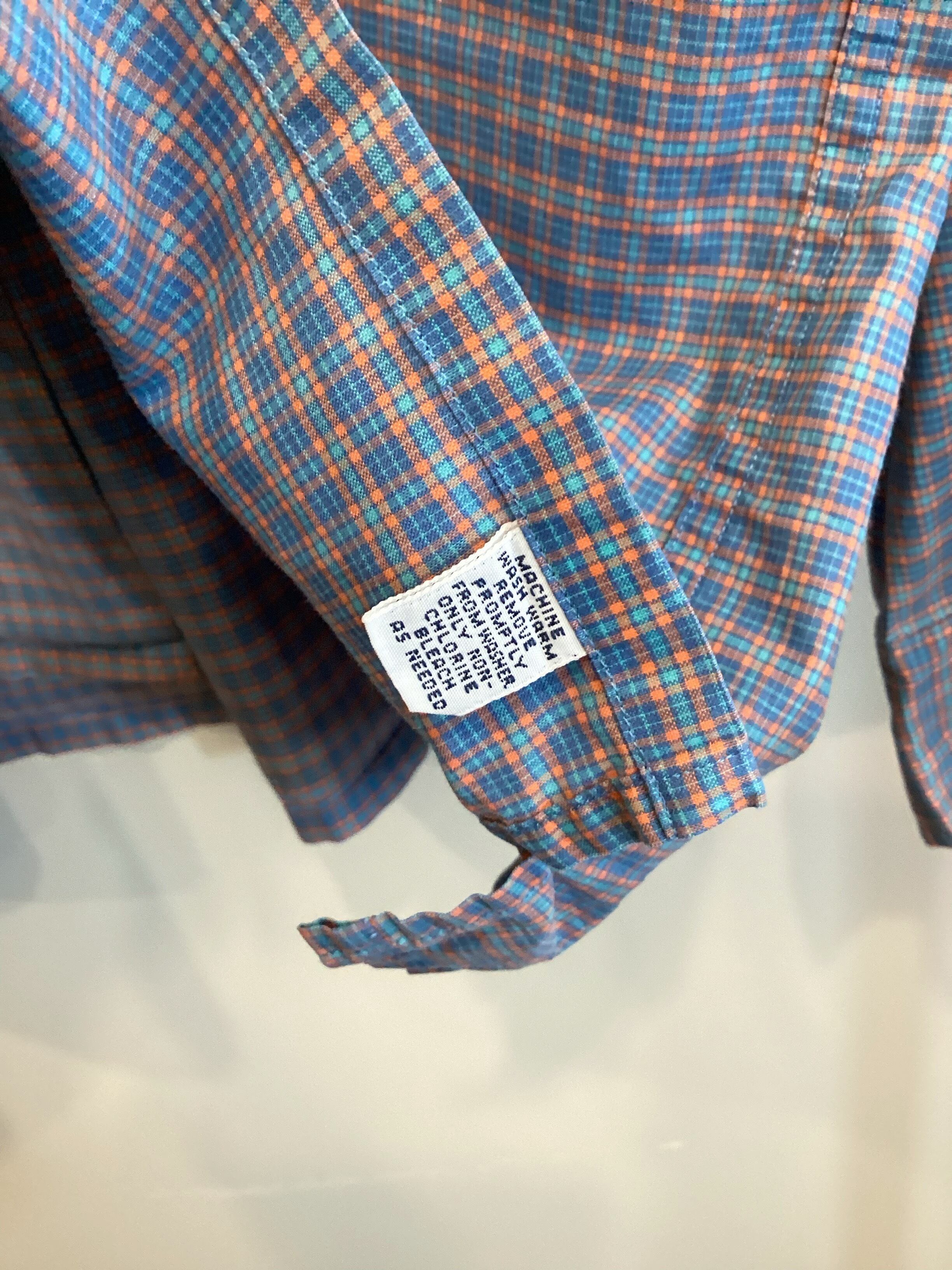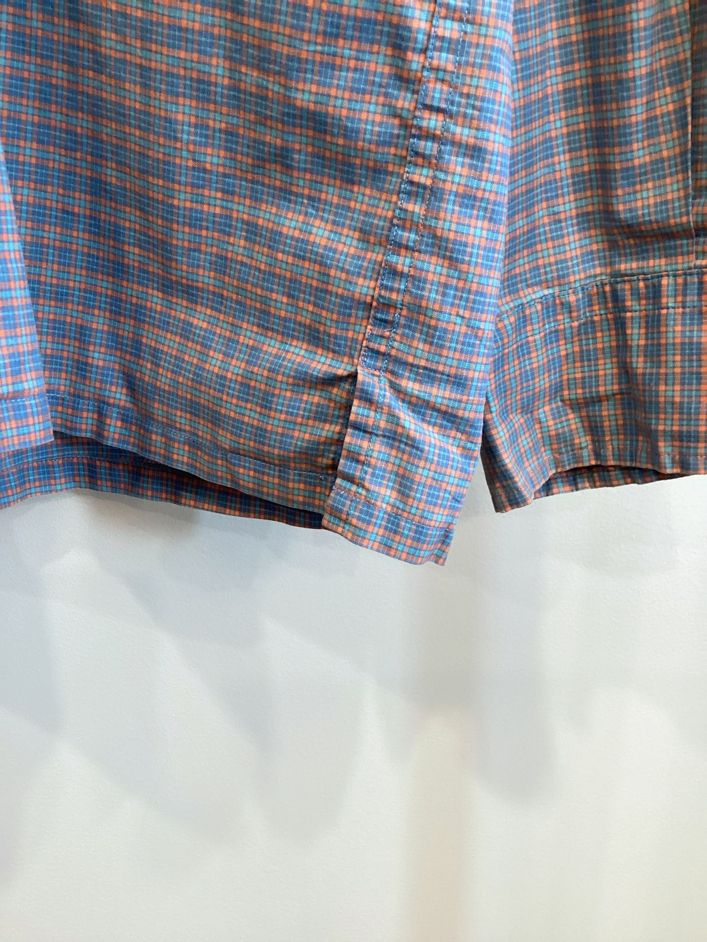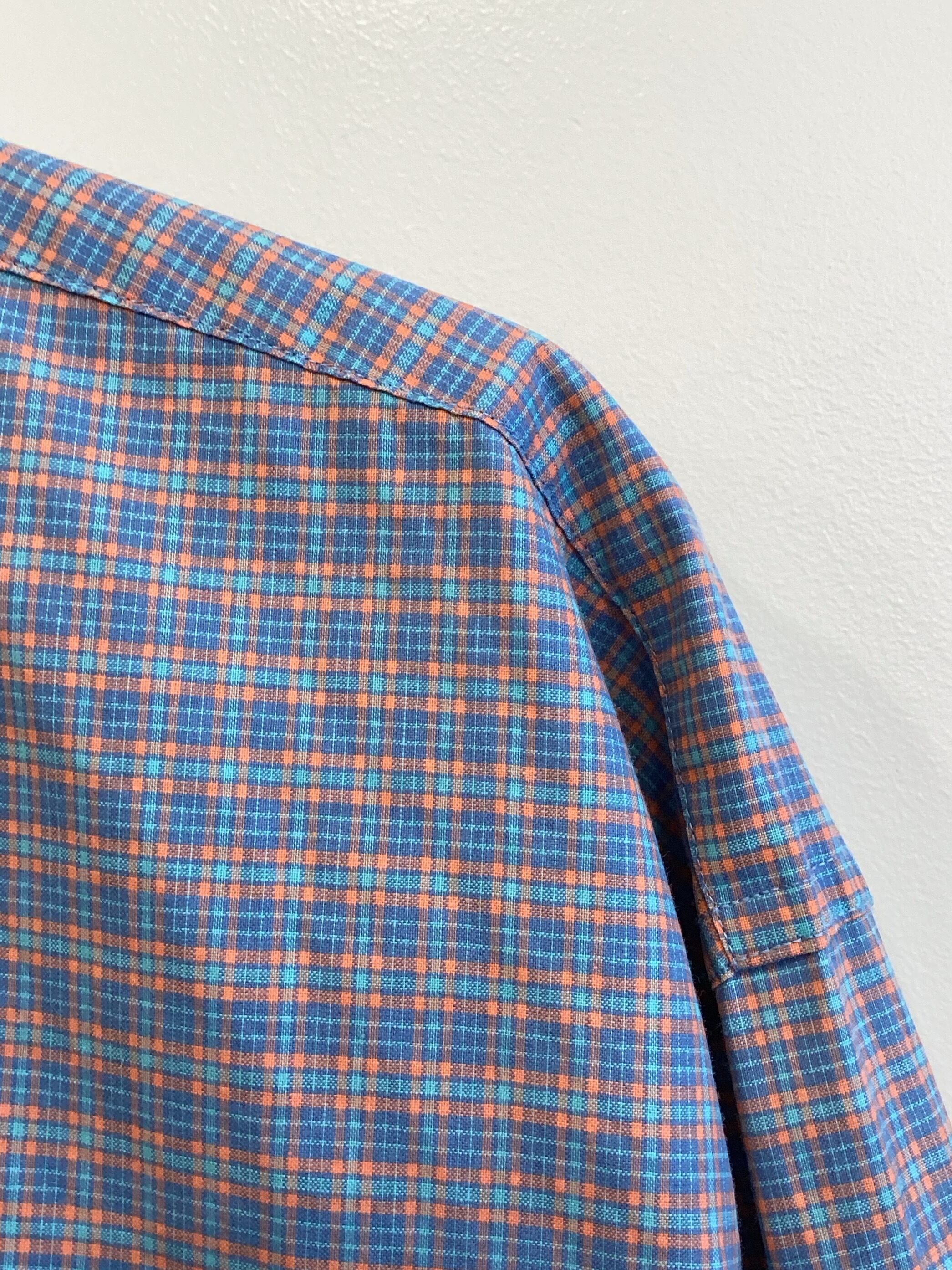 ブルー×サックス×オレンジで構成された細かなチェック柄は